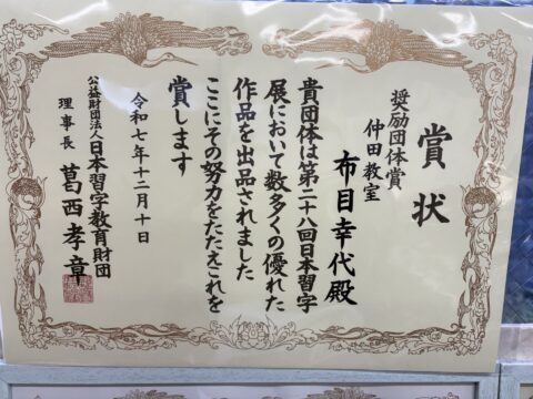 日本習字展奨励団体賞をいただきました。